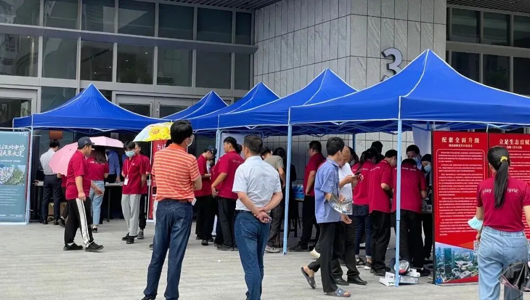 获400余批客户登记——市房协、惠州日报主办的“购房直通车”进科技产业园,助力青年置业时间:2022-09-23 市房协、惠州日报社组织优质房企走进园区 惠城对青年更友好,青年在惠城更有为。9月21-23日,惠城区“购房直通车”之青年置业助力行动走进雄韬•东江先进科技制造城,针对园区员工开展青年置业咨询指导服务活动,15家优秀房企共获400余批客户登记。 1、房企走进园区,收获400批客户登记 经主办方市房协、惠州日报社统筹组织,15家惠城优质房企工作人员在园区中午用餐时间段,针对园区员工展开青年置业咨询指导服务活动。 现场展示物料排列有序,精美礼品陈列其中,醒目的楼盘信息吸引了上千名园区员工前往咨询了解。针对活动的参与流程、优惠政策、楼盘产品、贷款利率等园区员工关心的问题,房企工作人员一对一耐心解答,派送青年置业手册进行辅助讲解,15家房企合计收获400余批客户登记。