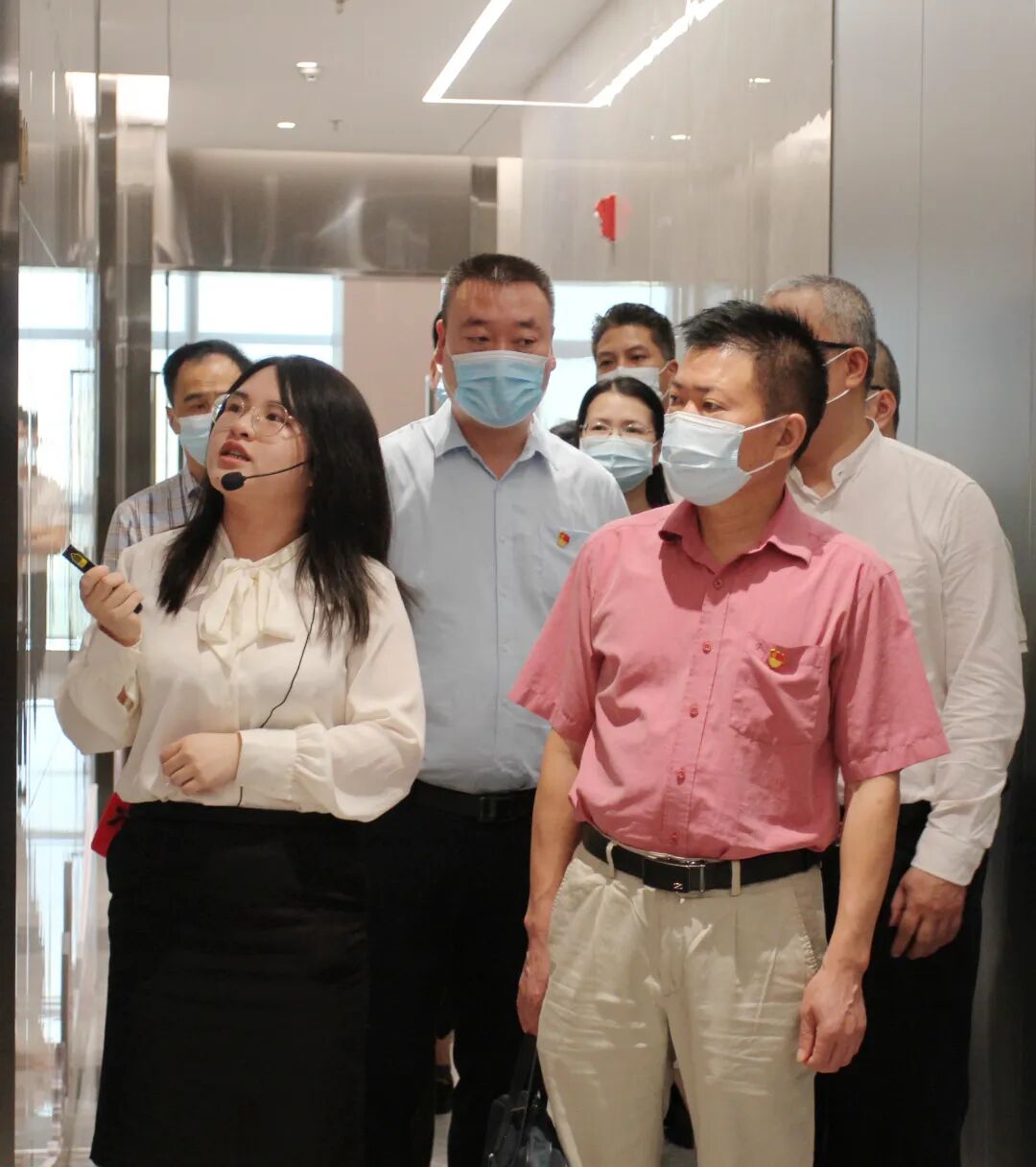 陈佳宾一行首先观摩了市房企党委所属隆生鹿江花园党支部“支部建在项目上,让老百姓买舒心房”,以及市建筑和房地产行业党委“用高质量党建引领行业高质量发展”的党建阵地。